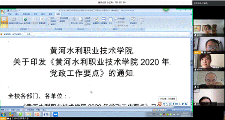 2020年3月28日下午4:00,水利工程学院教工水工技术与管理党支部全体党员通过腾讯会议直播的形式在线学习学校新学期会议精神和党政工作要点,会议由教工水工技术与管理党支部书记王建伟主持,支部全体党员参会。