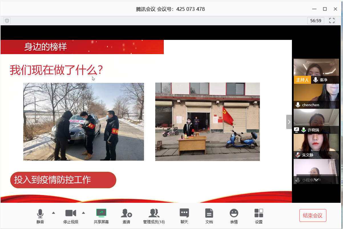 会上,许晓瑞带领全体党员学习了习近平总书记关于疫情期间防控重要指示精神和有关疫情防控法律知识,并介绍了张翔龙、张梓方两名支部党员在抗击疫情关键时期值守社区防疫监测点,严格排查进出车辆、宣传防疫知识的先进事迹,号召全体党员向身边的榜样学习,充分发挥共产党员在疫情防控战役中的模范带头作用。