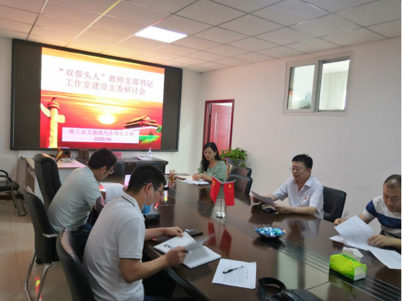 2020年6月23日上午,教工水文地质与水保党支部在实训楼5312会议室召开“双带头人”教师党支部书记工作室建设支委研讨会,水利工程学院党总支书记孙天星、教工水文地质与水保党支部全体支部委员参加会议。