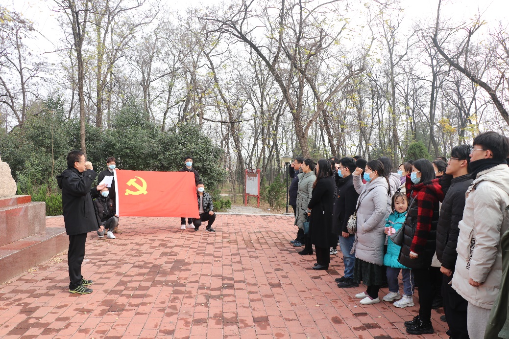 随后,师生党员们参观学习了兰考四面红旗纪念馆。现场学习了“韩村的精神、秦寨的决心、赵垛楼的干劲、双杨树的道路”,他们战天斗地的革命精神感动了一代又一代人,激励兰考人民彻底战胜了“三害”。“四面红旗”所代表的精神正是焦裕禄精神的真实写照,在岁月的洗礼中已逐渐沉淀成兰考人民宝贵的精神财富。之后,大家怀着崇敬的心情,来到象征焦裕禄精神的“焦林”前,听解说员讲述焦裕禄同志当年带领干部群众治理兰考生态环境,在沙土地上翻淤压沙“贴膏药”,种植“扎针”的故事。焦裕禄同志当年亲手栽下的刺槐幼苗,如今已长成参天大树,被人们亲切地称为“焦槐”,大家睹物思人、深切缅怀焦裕禄同志。最后,党总支书记孙天星带领师生党员在焦裕禄雕塑前重温入党誓词。