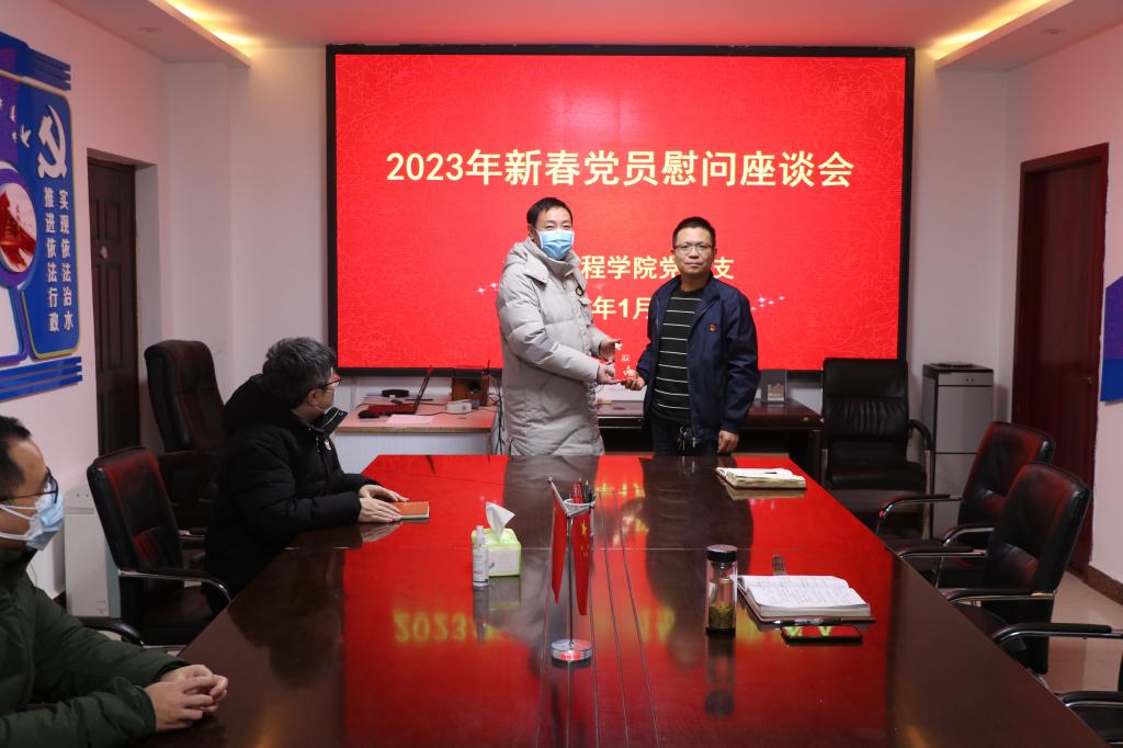 春节将至,岁寒情暖。2023年1月16日,水利工程学院教工水利工程与水动党支部党员代表万晓丹、水工技术与管理党支部书记王建伟、水工建筑与安全党支部书记吕桂军对离退休老党员袁俊森、青年党员徐鹏进行走访慰问,为他们送上温暖,向他们致以新春的问候和美好祝福,将党和学校的关怀送到老党员心坎上。