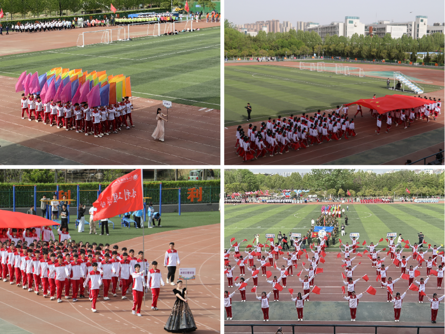 开幕式上,由我院学子组成的彩旗方阵活力四射,尽显青春风采;方块队列步伐铿锵踏出工科生的严谨风范;特色展示队挥舞80面红旗,整齐有力。最后巨型国旗从方阵上空徐展而过,12米红绸与青春身影交相辉映。三天赛事里,看台观众化作红色人浪,呐喊声浪与旗帜翻飞共谱热血篇章。