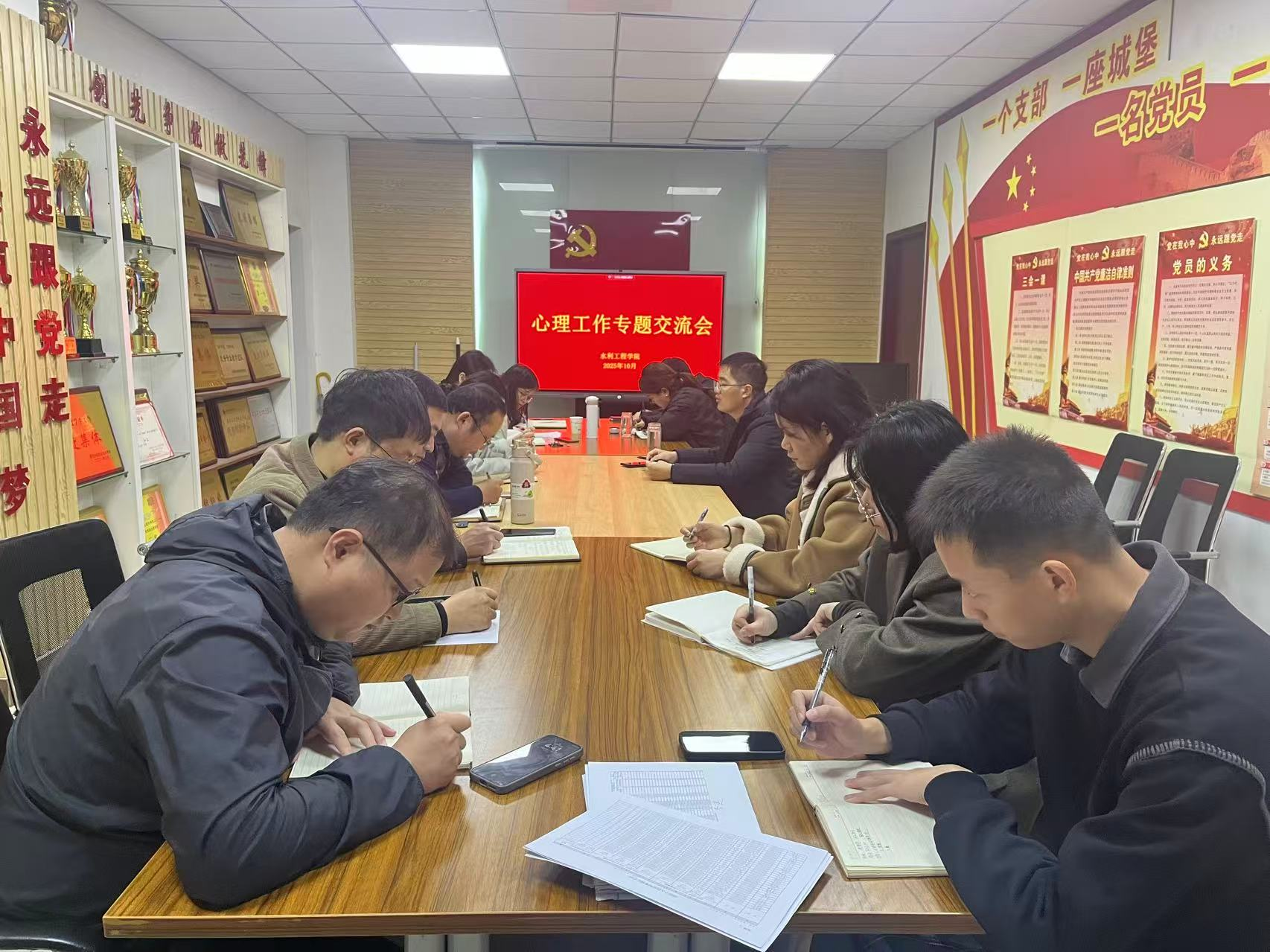 为进一步加强和改进学院学生心理健康教育工作,提升心理育人工作的针对性与有效性,护航学生健康成长与全面发展,10月30日,水利工程学院组织召开心理工作交流会。学院党总支副书记李建、全体辅导员参加了会议。