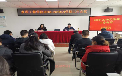 一步一个脚印,一步一个回顾,一步一个总结。不忘本来,吸收外来,面向未来。2019年2月26日下午,2018—2019(2)学期工作会议在实训楼5310召开。水利工程学院党总支书记孙天星,院长陶永霞以及水利工程学院全体教职工参加会议。会议由水利工程学院党总支书记孙天星主持。