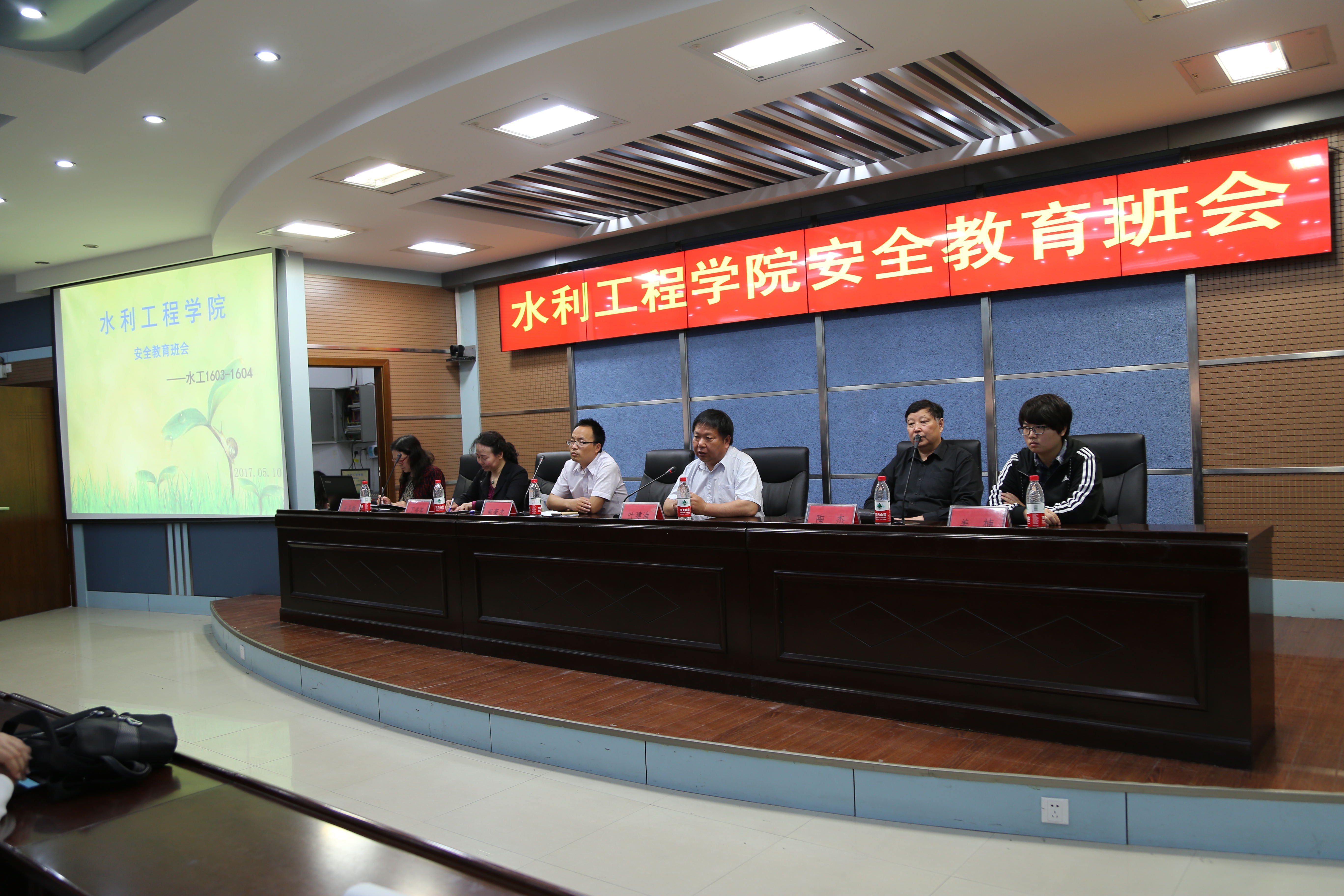 5月10日,水利工程学院水工1603-04两个班在即将进行校外实习之前,召开了安全教育班会,水利工程学院书记叶建海、学生处心理咨询中心主任郭豪杰、实习指导教师陶杰、丁秀英以及辅导员、班主任参加了会议。