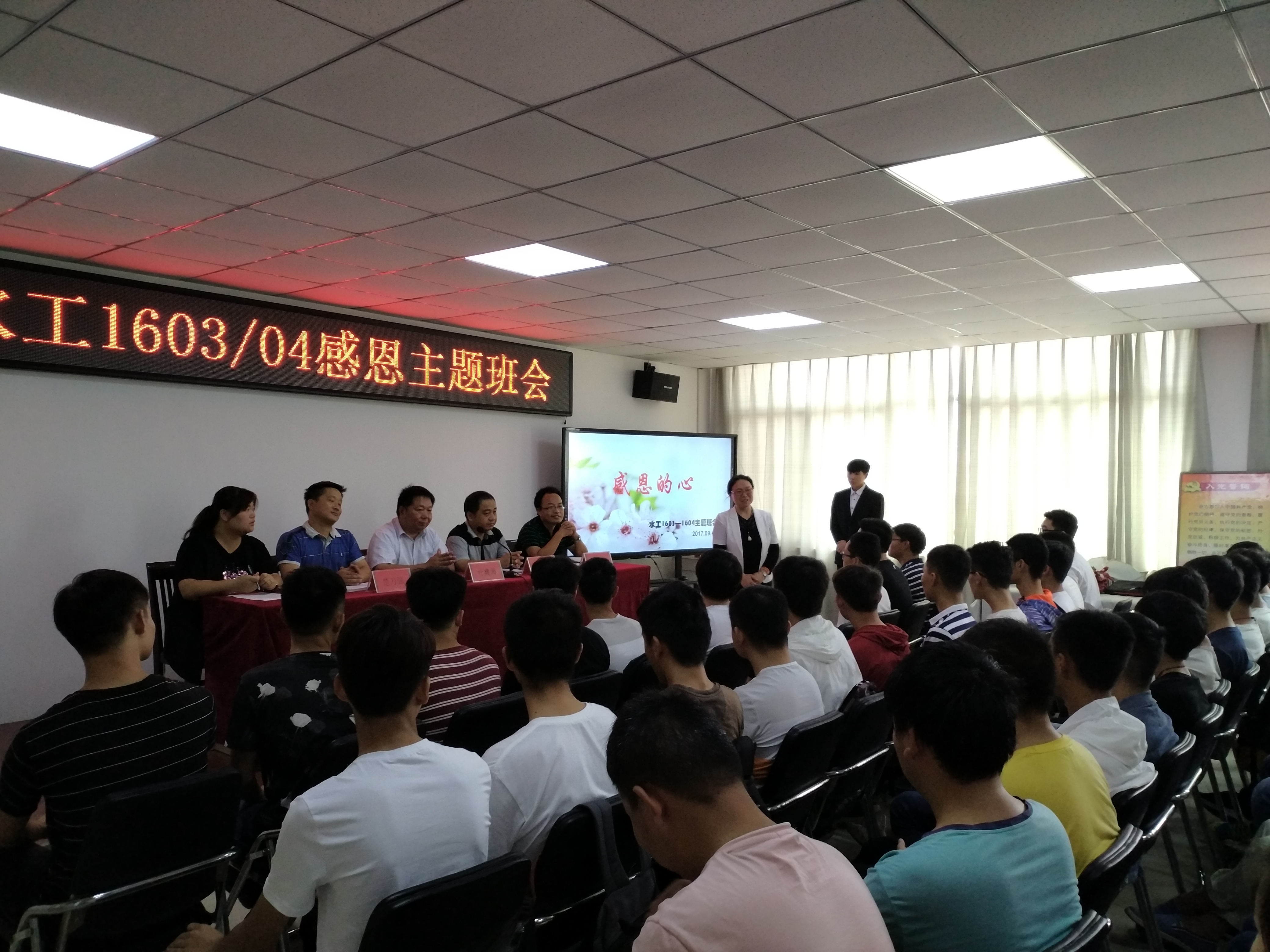 9月15日,水利工程学院水工1603/04为了欢迎车祸后康复的谭成杰同学返回班级温暖大集体,特邀水利工程学院书记叶建海、水利工程学院院长罗全胜、副书记楚万强、黄河水院心理咨询中心主任郭豪杰、水利工程学院分团委书记李晓娟等参加班会,进行感恩爱、传播爱为主题的班会。