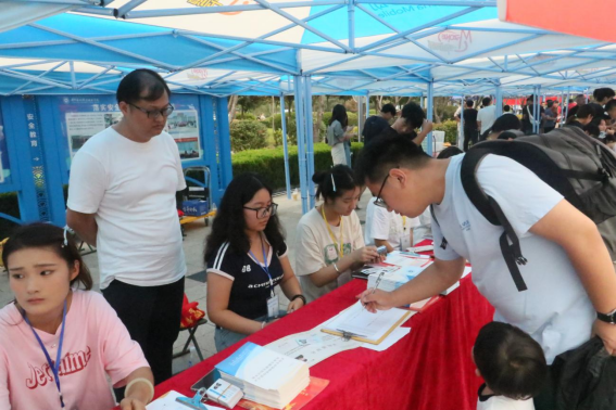 党总支书记王建设、院长雷恒在迎新现场,时刻关注新生报到情况,并与家长亲切交流。