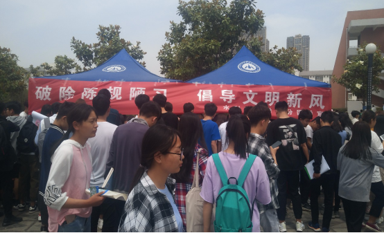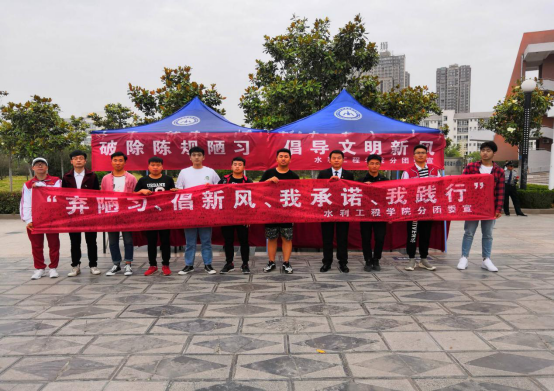 为积极响应习近平总书记在十九大报告中提出的“开展移风易俗,弘扬时代新风”号召,2019年5月14日,水利工程学院在思源路开展“破除陈规陋习,倡导文明新风”签名活动。