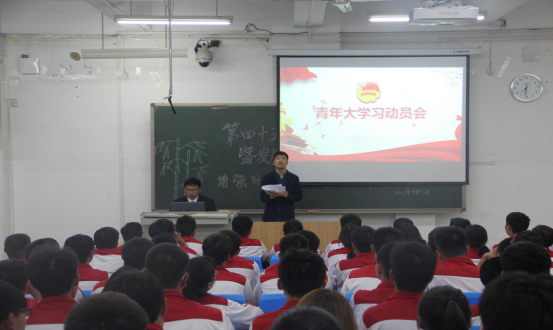 青年大学习,奋进新时代。2019年5月21日,水利工程学院在JX2201组织开展青年大学习动员会。水利工程学院分团委书记李建参与并主持本次动员会。