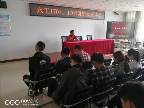 2019年5月15日,水利工程学院在sy5310举行资助政策的宣讲会。本次会议由水利工程学院2017级辅导员张旭老师主持,由资助助理张恒熙就资助政策进行讲解。水工1701和1702班全体学生参与本次会议。