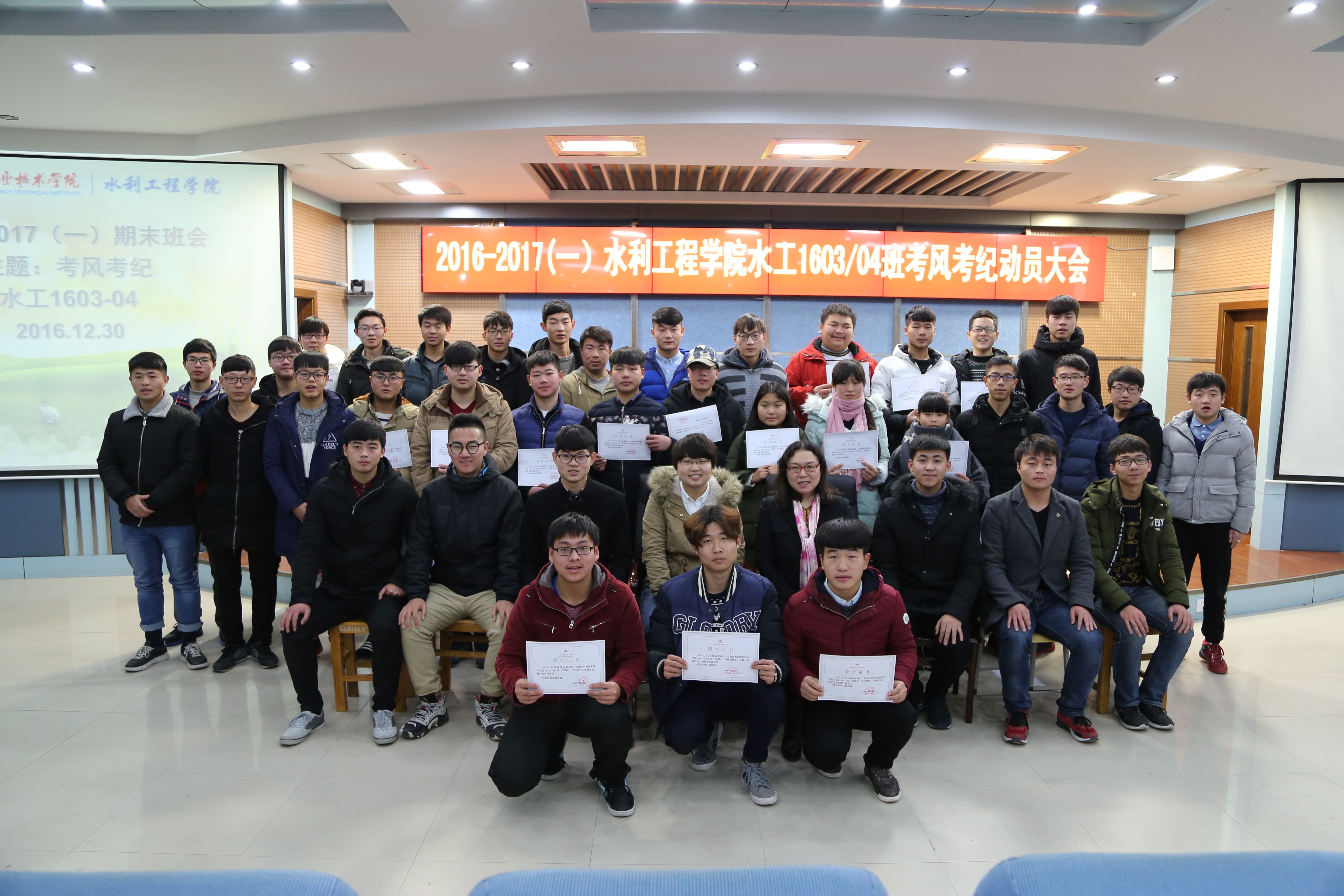 12月30日,水利工程学院水工1603/04班会举行了别开生面的班会,经过老师与班委的精心策划和准备,班会形式新颖,效果突出,得到师生赞可。班会分为考风考纪动员,班委工作总结,同学大学生活分享,最后是班级表彰。