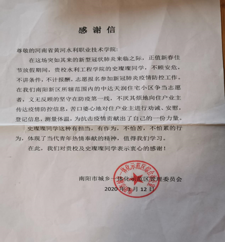 在此次疫情爆发期间,我响应着“生命重于泰山。疫情就是命令,防控就是责任。”的口令,主动申请加入小区附近的防控点为大家量体温,登记人员出入,义无反顾的坚守在社区防控第一线。有人感慨,面对空前的疫情,十几亿人口的大国,水不停,电不停,暖不停,通信不停,物资供应不断,社会秩序不乱……只有中国,只有在中国共产党领导下,才能做到。作为一名光荣的共青团员和入党积极分子我坚持尽自己绵薄之力为大家做好服务,以自己的实际行动发挥模范带头作用。