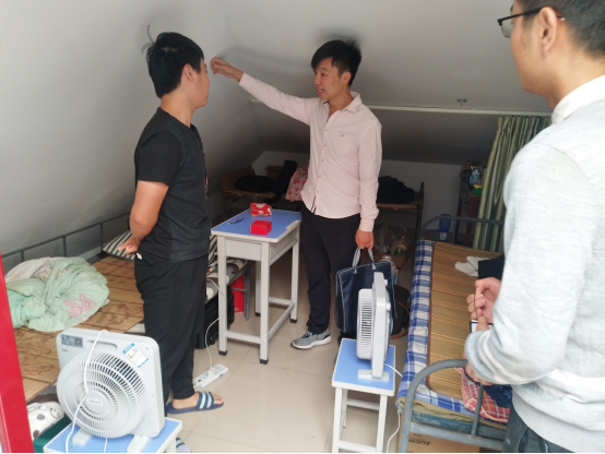 学校北门口是复兴大道,车流量大且车速较快,且北门是离宿舍楼最近的,许多同学经常从此门出入,存在较大的安全隐患,结合宿舍消防用电安全这一大项,我特地到学生宿舍走访排查,向学生们宣传交通安全法则、查看消防器材配备情况以及电线电器使用情况。极大的提高了学生们的交通与宿舍安全意识。