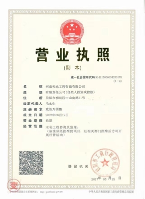 河南天地工程咨询有限公司成立于1997年,现具有水利工程施工监理甲级资质、机电及金属结构设备制造监理、水土保持工程施工监理、水利工程建设环境保护监理等资质。