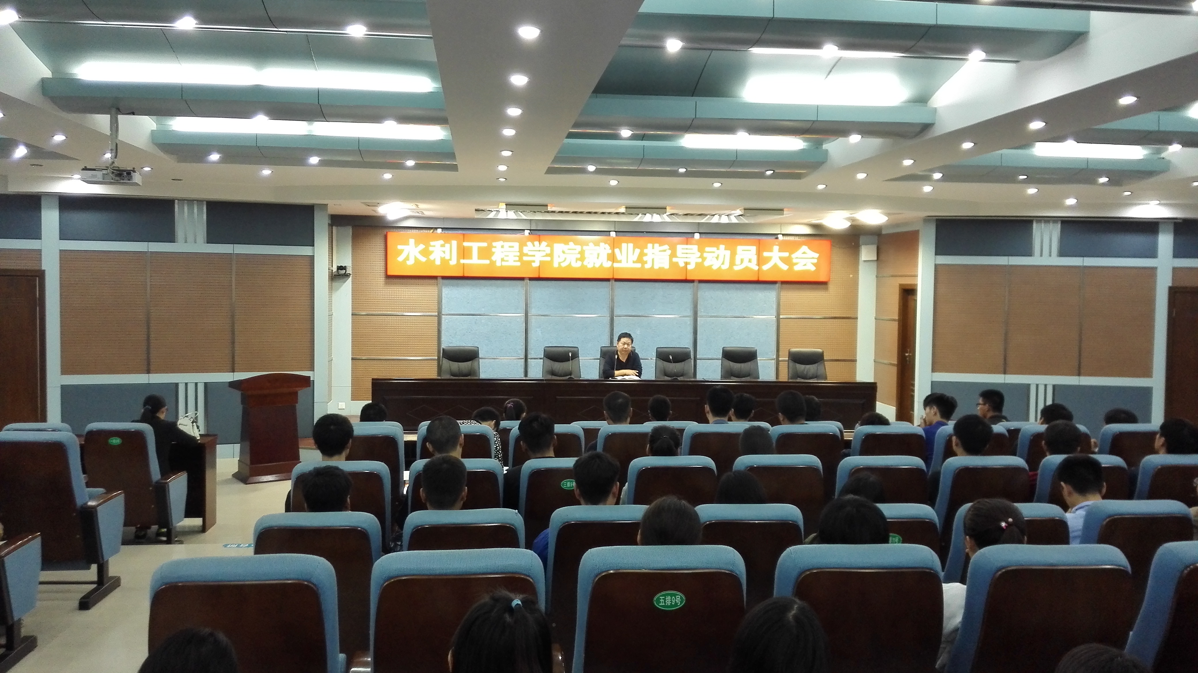 10月15日下午,水利工程学院2017届全体学生就业动员大会在SX3301召开。会议由水利工程学院党总支书记叶建海老师主讲,学院校企合作办公室主任陶攀老师,2014级全体辅导员及2017届全体学生参加本次大会。