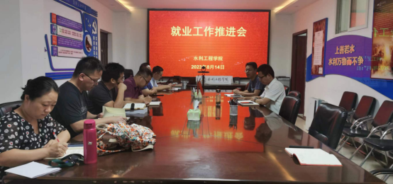2023年8月14日在实训楼5312召开2023届毕业生就业工作推进会,本次会议由水利工程学院院长雷恒主持,参会人员为水利工程学院毕业班班主任,本次会议的议题是讨论2023届毕业生的就业情况以及提出应对学生就业问题的措施。