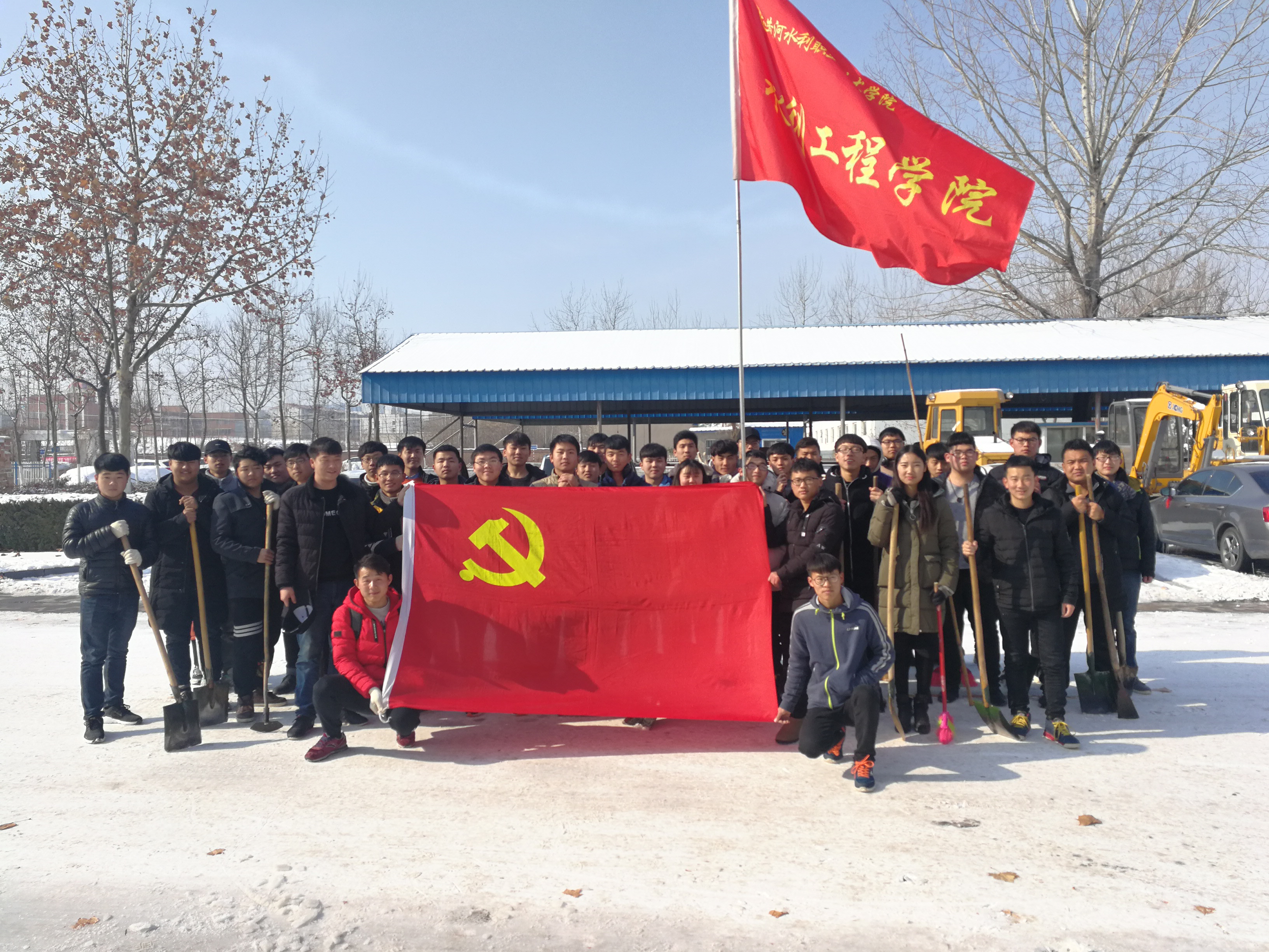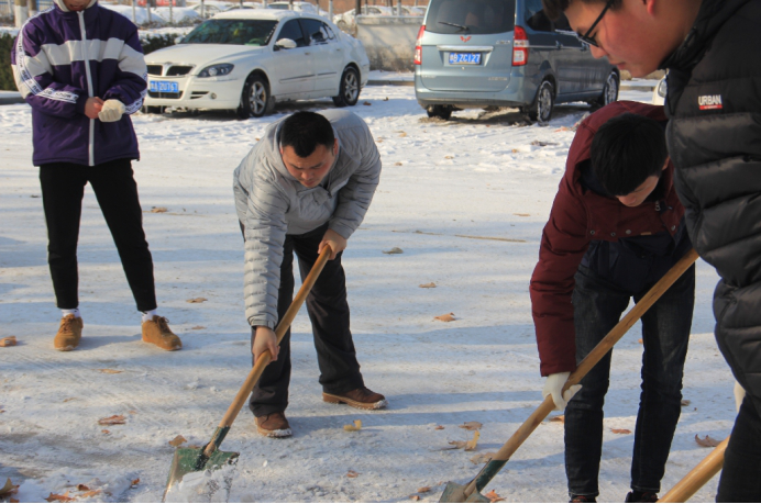 水利工程学院党员志愿扫雪活动由党总支书记叶建海带队共分两组对我校五号实训楼和西主干道及家属院门口进行志愿扫雪活动,天气虽然寒冷,但志愿者们干劲十足,扫雪中,大家不顾天寒路滑,有的扫、有的铲、有的推、齐心协力,呈现出一派热火朝天的扫雪场景,经过近几个小时的认真清理,使我校五号实训楼西侧主干道及家属院门口焕然一新,清洁安全的道路呈现在我校师生的面前,为大家雪天行走安全提供了良好的环境。
