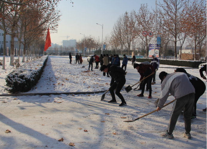 水利工程学院志愿者在西主干道进行清雪