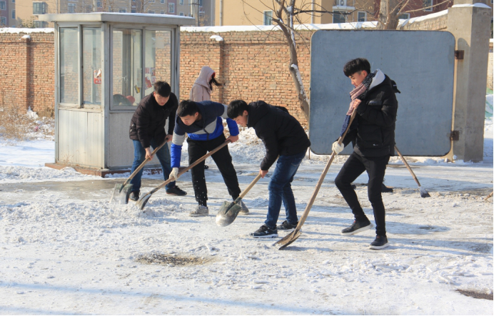 水利工程学院志愿者在家属院门口进行清雪