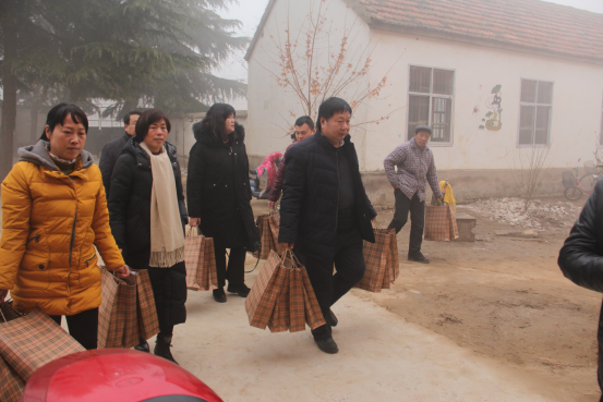 心系留守儿童,手送几缕温暖, 2018年1月17日上午,水利工程学院党总支前往通许县大岗李乡小岗郭村小学开展为留守儿童送温暖活动,水利工程学院党总支书记叶建海及信息工程系党总支副书记李晓娟和水利工程学院党总支办公室主任万勋、教工一支部书记王建伟及学生党员、学生干部代表深入我院关爱留守儿童基地参加此次活动。