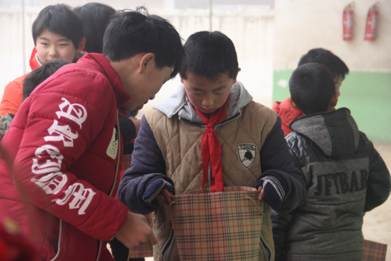 在新春佳节即将来临之际,水利工程学院为留守儿童御寒围巾、帽子、手套等慰问品,也为他们送去了新春的祝福。自从水利工程学院教工一支部正式在大岗李乡小岗郭村小学建立留守儿童关爱基地以来,水利工程学院都会长期的、经常的过来开展一系列学习教育实践活动。这既是水利工程学院教工一支部全体党员对留守儿童的关爱,也是践行‘两学一做’学习教育形式的延伸与发展。”