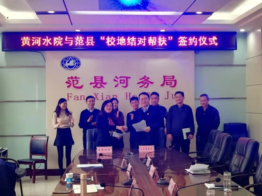 为进一步落实我校与范县“校地结对帮扶”精准扶贫工作方案,坚决打好精准脱贫攻坚战,在前期已进行多次调研和沟通的基础上,2月27日水利工程学院院长陶永霞、副院长冯峰带队前往范县黄河河务局、范县水利局开展“校地结对帮扶”精准扶贫对接工作,与两家单位签订“校地结对帮扶”合作协议。
