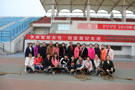 2019年3月8日,为迎接第109个国际妇女节,我校工会组织举办了女教职工趣味运动会。我院女教职工全员上阵,以饱满的精神面貌参加了团体项目: 拔河比赛、托球往返接力;以及个人项目:1分钟踢毽子、1分钟跳绳。