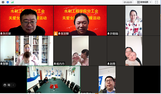 1月19日上午,水利工程学院分工会组织了关爱水利工程学院女职工送温暖活动,按照学校疫情防控要求,采用线上慰问形式。水利工程学院分工会主席孙天星、院长陶永霞、女工委员张圣敏、工会秘书刘勇进以及休产假的教师杨丹丹等四位教师和她们的宝宝们参加了活动,教师们对活动很满意,称赞学院考虑周到细致,温暖感人。