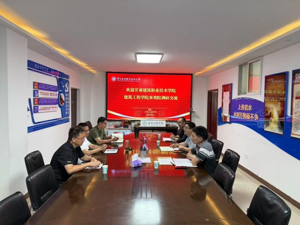 6月27日,甘肃建筑职业技术学院建筑工程学院院长李斌、副院长李天平及建筑施工教研室主任赵富荣一行来我院就水利类专业建设、实训基地规划建设及数字化转型时期专业发展及改革路径等问题进行交流,水利工程学院院长雷恒,副院长陈西良,施工技术教研室主任吴伟参加了会议。
