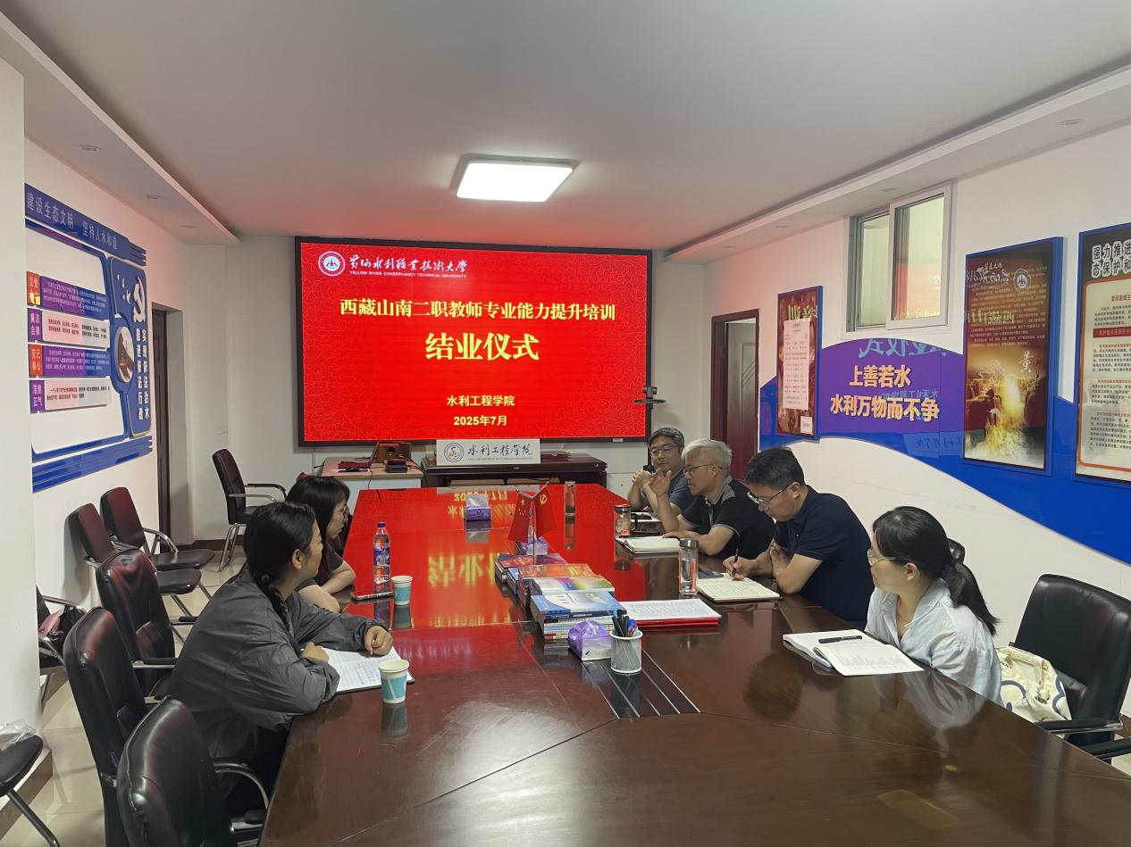 2025年7月24日,西藏山南市第二中等职业技术学校教师专业能力提升培训结业仪式在我院实训楼5312会议室举行。本次培训学员为西藏山南市第二中等职业技术学校教师谢文丹、仁增卓玛。水利工程学院党总支书记王建设、副院长陈西良和水电站专业的部分老师参加了仪式,仪式由曹明伟主持。