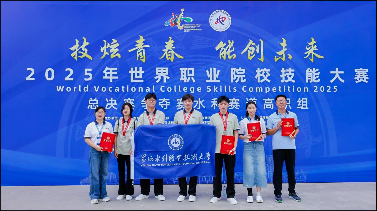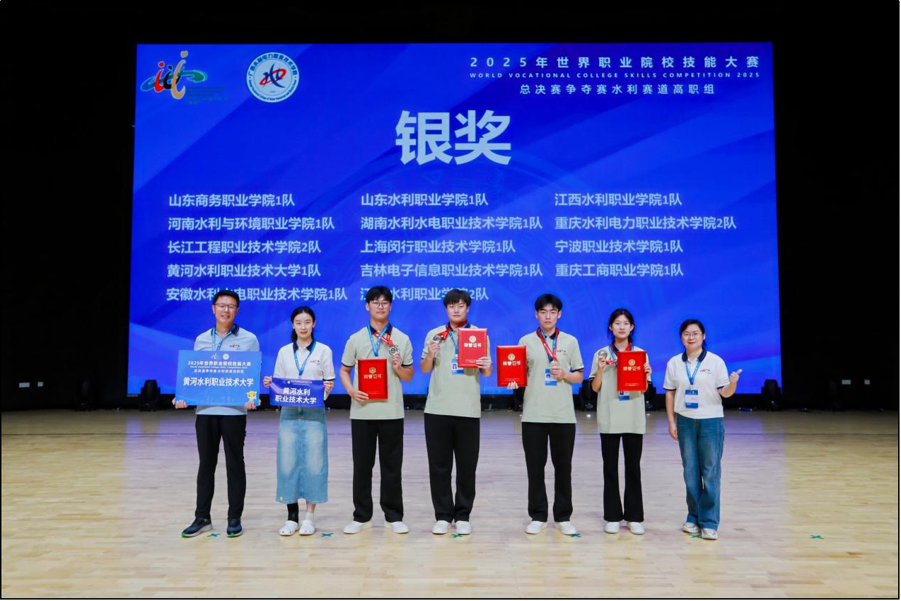 8月22日至26日,2025年世界职业院校技能大赛高职组水利赛道总决赛在广西水利电力职业技术学院举行,来自全国64所高校的80支代表队、共计312名选手参赛。水利工程学院学生张亮、贾博菲、郭庆、张小欠组成的参赛队伍在制图团队教师李颖、李瑞的指导下细心备赛、刻苦训练,最终在总决赛中脱颖而出获得大赛银奖。