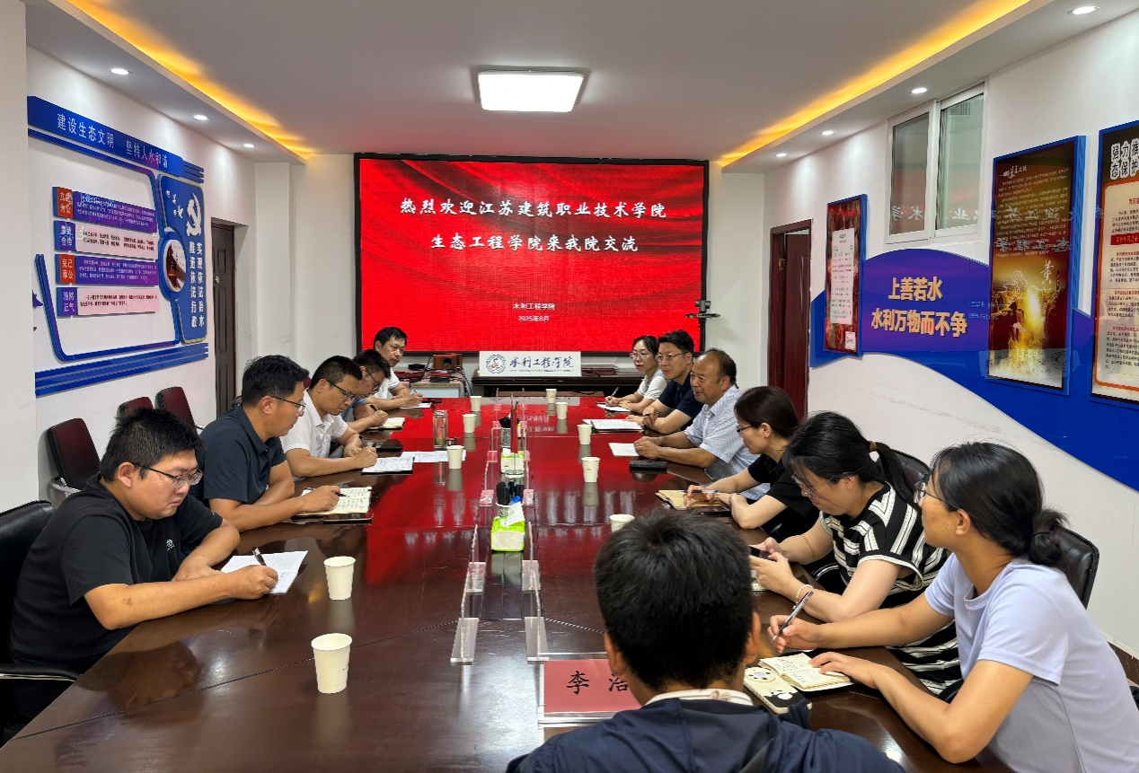 8月29日,江苏建筑职业技术学院生态工程学院院长刘喜坤一行七人来我院调研交流,水利工程学院院长雷恒、副院长陈西良及相关专业教师热情接待了来访客人,双方在学院会议室举行了座谈。
