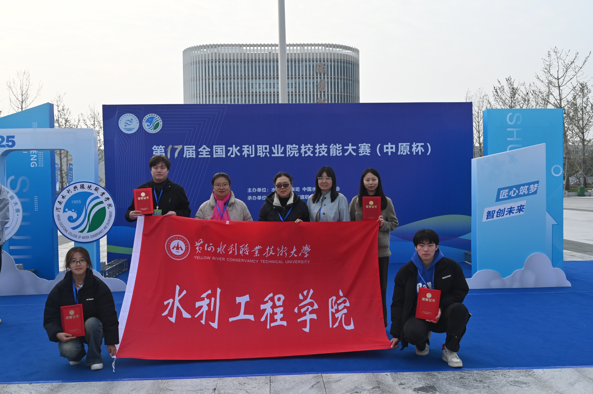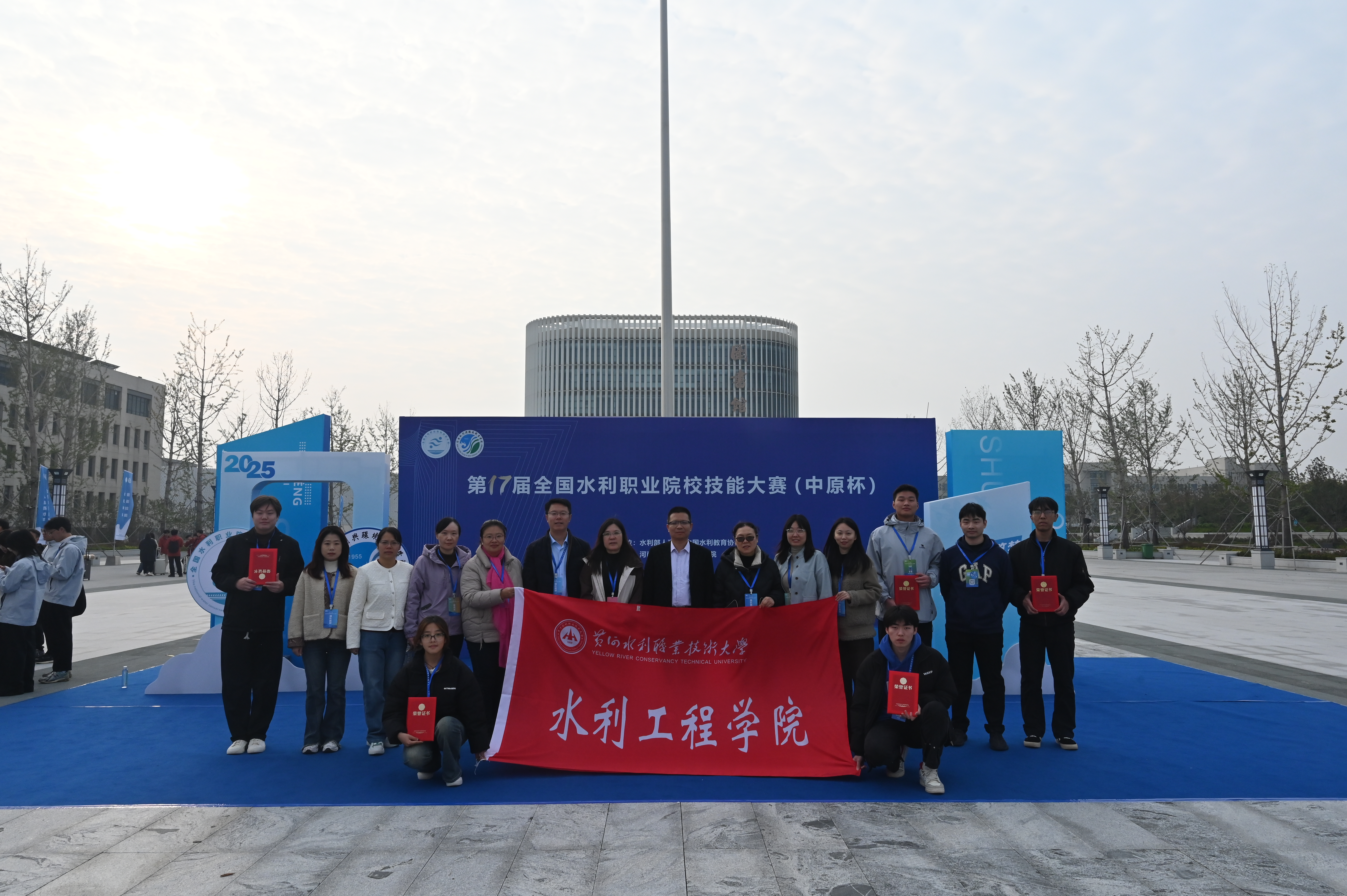 2025年10月23日,由水利部人事司、中国水利教育协会主办的第17届全国水利职业院校技能大赛(中原杯)在河南水利与环境职业学院落下帷幕。来自全国39所水利职业院校的选手同台竞技,我校水利工程学院学子表现亮眼:贾博菲、胡羽彤、张亮获“水利工程BIM建模与应用”赛项个人一等奖及单项团体第二名;付柳杨、焦自豪、曹锴烨获“水利工程造价赛项”个人二等奖及单项团体第一名;郑鑫苗、李俊锐、孔晓语、闫宗泽获“智能节水系统设计与安装”赛项个人三等奖。