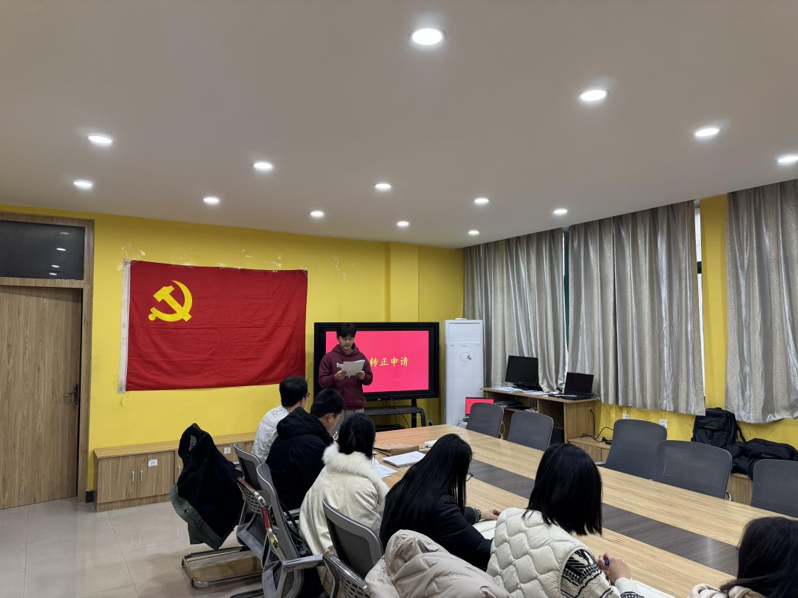 2025年12月23日,学生水工技术与管理支部于SY3414教室召开党员转正大会,7名支委成员悉数到场,审议李东沅同志的转正事宜。