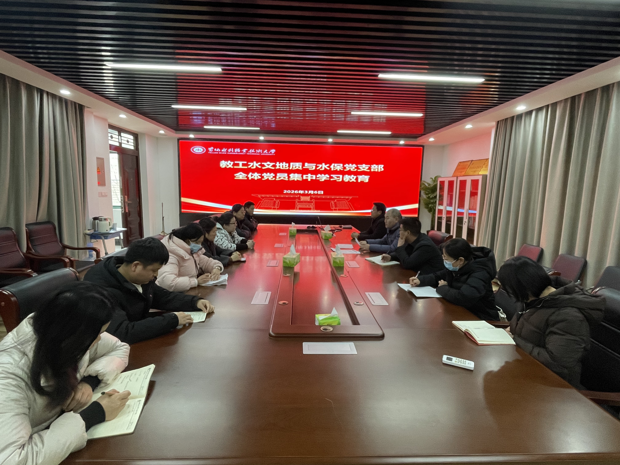 2026年3月6日下午,教工水文地质与水保党支部在SY3319进行全体党员集中政治学习。