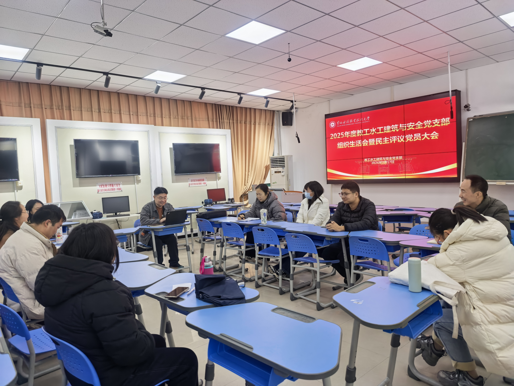 3月17日下午,教工水工建筑与安全党支部在SY3206召开2025年度组织生活会并开展民主评议党员工作。