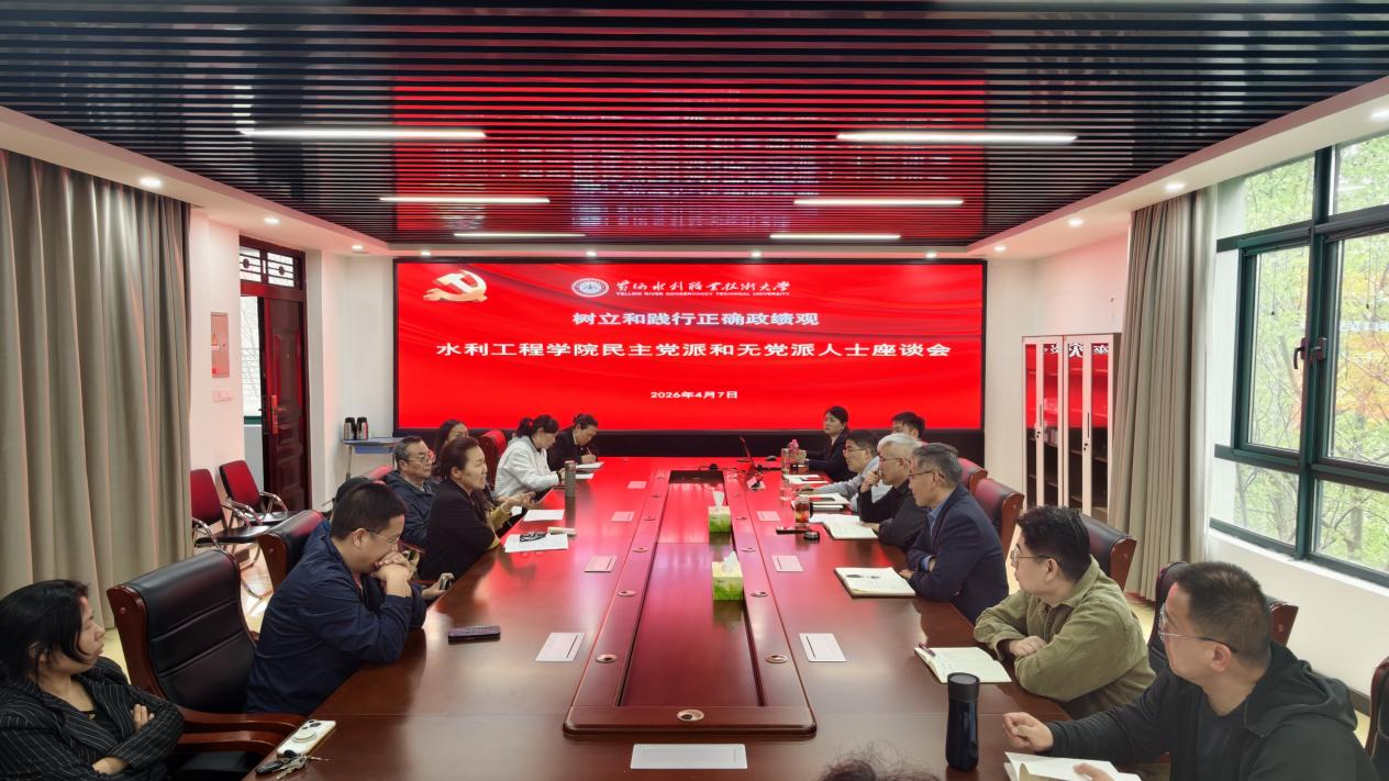 4月7日下午,水利工程学院在sy3319召开树立和践行正确政绩观民主党派和无党派人士座谈会,学院领导、各党支部书记、全体民主党派和无党派人士参加座谈会。会议由党总支书记王建设主持。