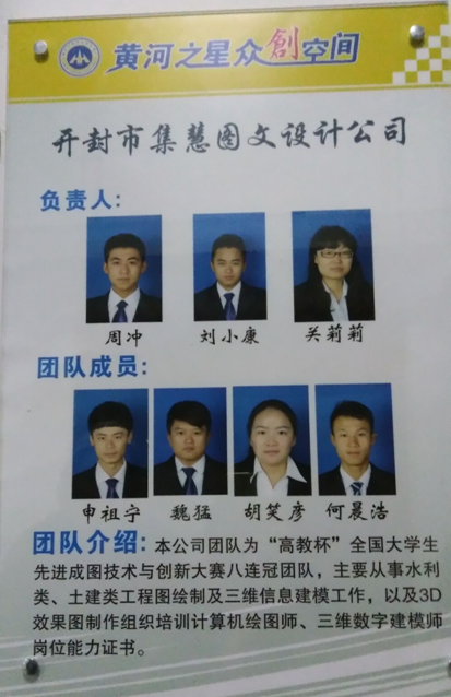 11月9日,水利工程学院第一个大学生创业公司成立了,开封市集慧图文设计公司,公司基于工程制图团队指导的黄河水院CAD协会,在学校团委和院团委的大力扶持下,公司在黄河水院众创空间安家落户,发挥特长,争取在图文设计方面有新的发展和突破,探索我院大学生创新创业之路,引导和吸引更多的大学生参与创新创业行动中。