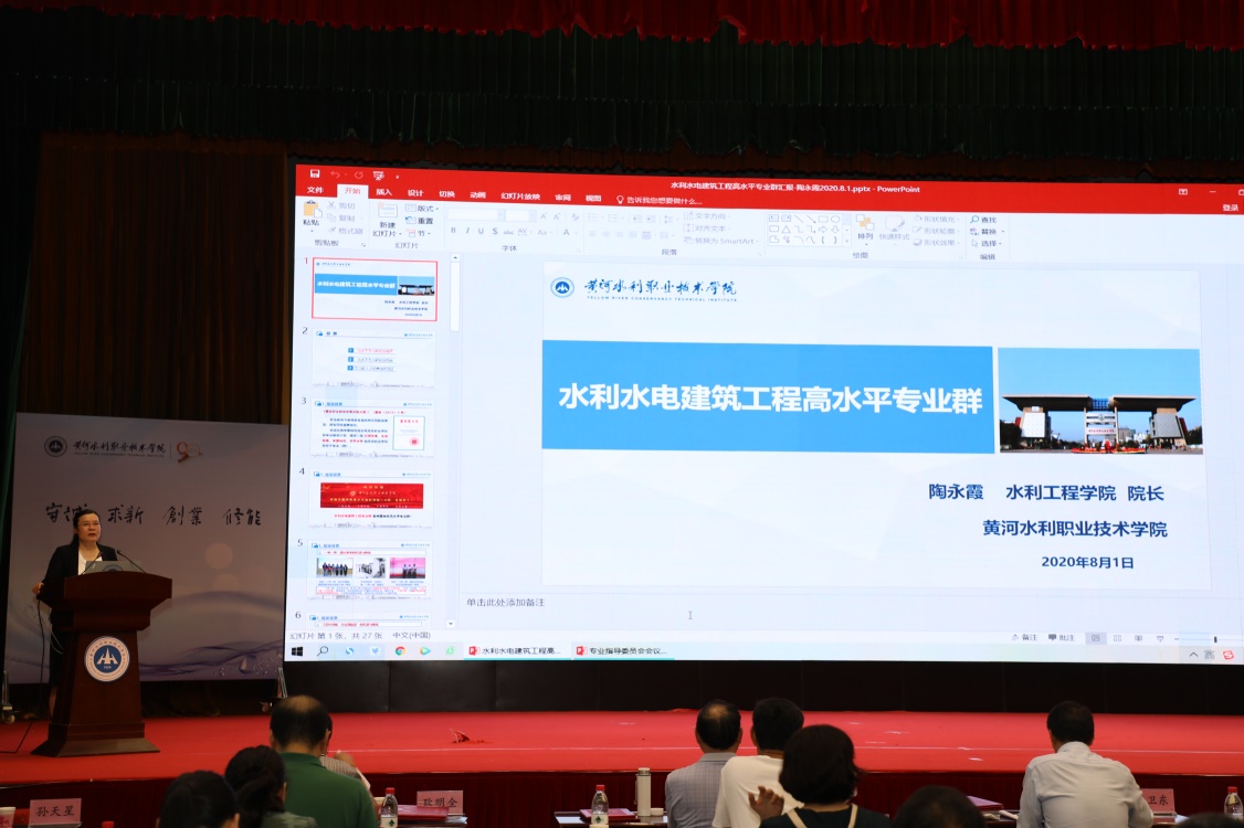 陶永霞从专业群面临的机遇和挑战、建设目标、建设任务等方面对水利水电建筑工程中国特色高水平专业群进行了汇报。她请指导委员会和各位专家对人才培养模式和课程体系构建等顶层设计进行深入研讨和交流。相信在专业群建设指导委员会的指导下,学校一定能建设好定位准确、布局合理、大类集中、相互支撑、优势明显、特色鲜明、错位发展、当地离不开、业内都认同、国际可交流的水利水电建筑工程中国特色高水平专业群。