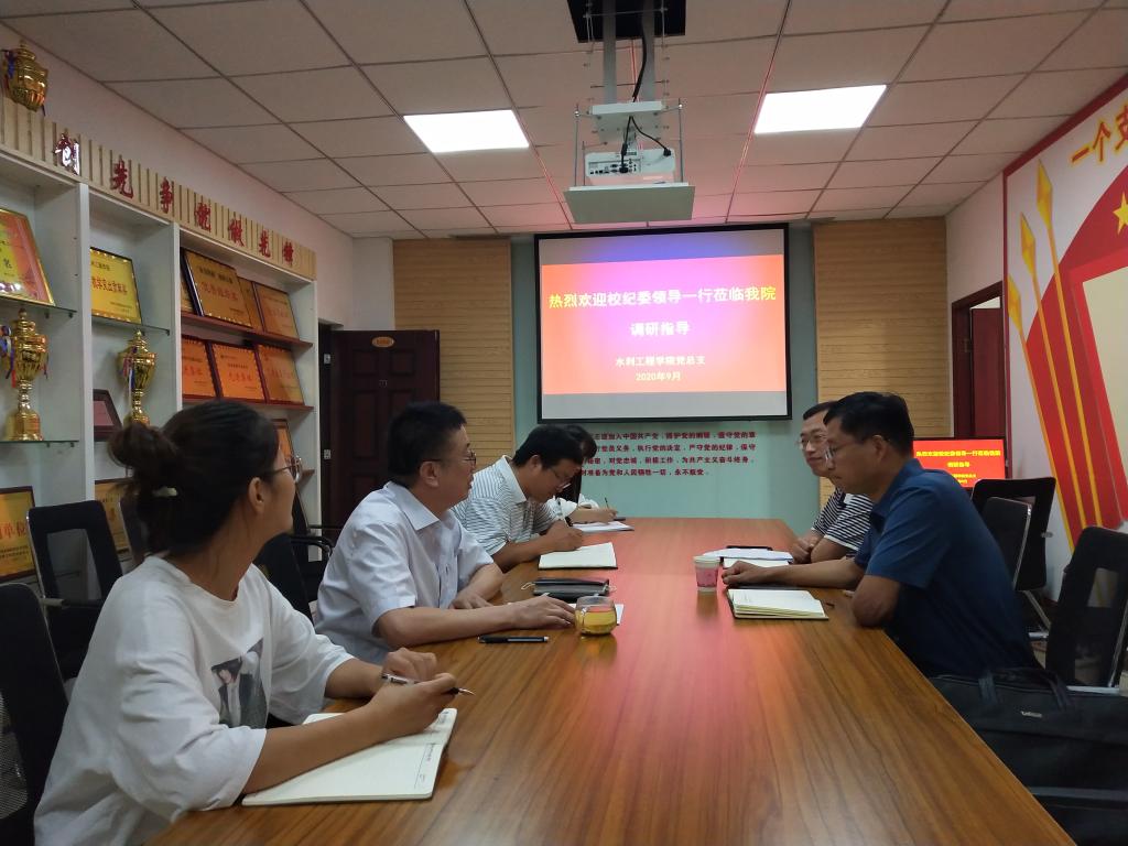 为深入学习贯彻习近平新时代中国特色社会主义思想和党的十九大精神,按照学校“双高校”建设方案中加强党的建设任务总要求,校纪委制订“廉政教育+”品牌创建活动方案。2020年9月17日下午,校纪委副书记王忠伟和纪委办公室副主任李良玉一行莅临我院调研指导“廉政教育+”品牌创建工作。水利工程学院党总支书记孙天星、副书记申浩、纪检监察员周晓岚及教师代表李欢出席了此次会议。