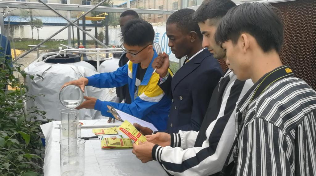 2020年10月3日上午,黄河水利职业技术学院大学生创客空间“水润万物萌创工厂”在惠北水利科学试验站举办了“营养在线——设施农业水肥一体化技术”主题沙龙,邀请了国际教育学院王晓岚老师、李娅菲老师和8名留学生进行参观,并向其介绍了目前应用广泛的水肥一体化技术,还介绍了该创客空间关于设施农业水肥一体化项目的实施情况,以及新技术的创新和推广情况。