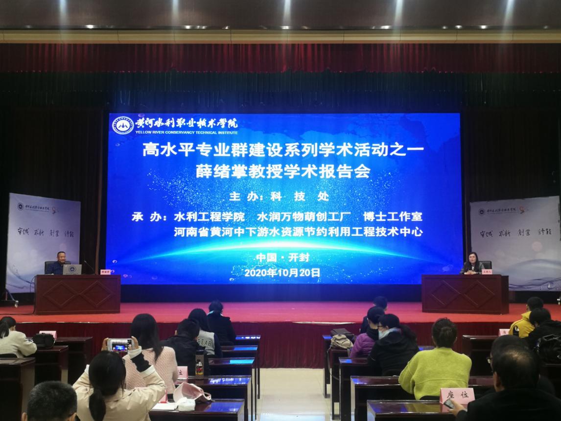 2020年10月20日下午,高水平专业群建设系列学术活动在我校学生活动中心一楼报告厅举行。北京市农林科学院智能装备技术研究中心薛绪掌研究员应邀做《负水头灌溉技术研究进展》专题学术报告。水利工程学院全体教职工和学生代表共500余人聆听了报告。报告会由水利工程学院陶永霞院长主持,冯峰副院长总结和致谢。