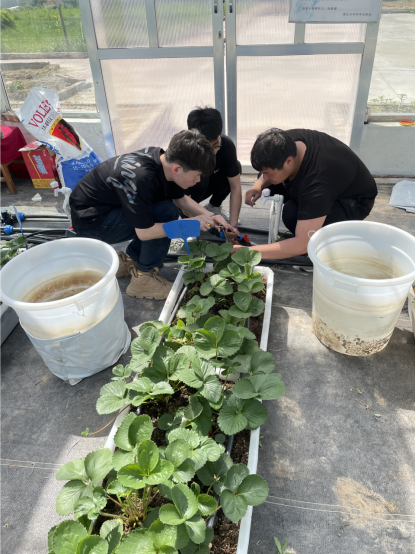 薛绪掌教授为参加活动人员讲授了水肥一体机的组成与功能,演示了水肥一体机与供液管道的安装程序,介绍了使用方法和注意事项,并且让创客空间的学生们参与了管道安装工作。