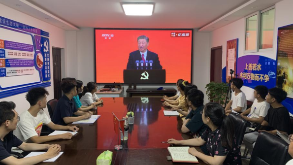 6月29日上午,“七一勋章”颁授仪式在北京人民大会堂隆重举行。中共中央总书记、国家主席、中央军委主席习近平首次颁授“七一勋章”并发表重要讲话。水利工程学院组织师生代表观看了大会直播,大家一起学习勋章获得者一心向党,全心全意为人民服务的精神,祝福中国共产党建党百年。