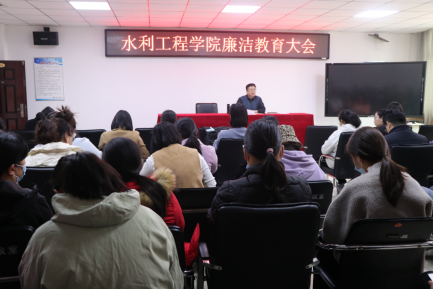 10月19日下午,为引导教职工牢记育人初心,筑牢廉洁自律思想根基,营造风清气正的育人氛围水利工程学院组织召开廉洁教育大会,全院教职工参加了会议,会议由学院党总支书记孙天星主持。