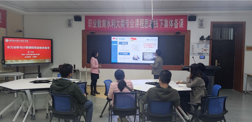 以《水力分析与计算》课程思政集体备课活动为示范引领,水利工程学院以水利类专业课程思政分中心建设为契机,开展全员参与思政教育的教师能力建设活动,充分发挥思政课教师和专业课教师自身优势,形成课程联合开发团队,深度挖掘各课程知识所蕴含的思政元素、凝练课程思想政治教育资源、优化思政教学内容、改革思政教学方法及评价体系,把思政工作贯穿教学全过程,构建典型课程思政建设体系及实践路径,实现专业教学与思政教育同向同行,在实践探索同时强化理论研究,为全国水利类专业课程思政建设提供“黄河水院经验”。