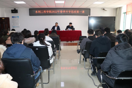 2月22日下午,水利工程学院召开2022年春季开学思政第一课部署推进会,党总支书记孙天星、院长雷恒以及全体教职工参加会议。