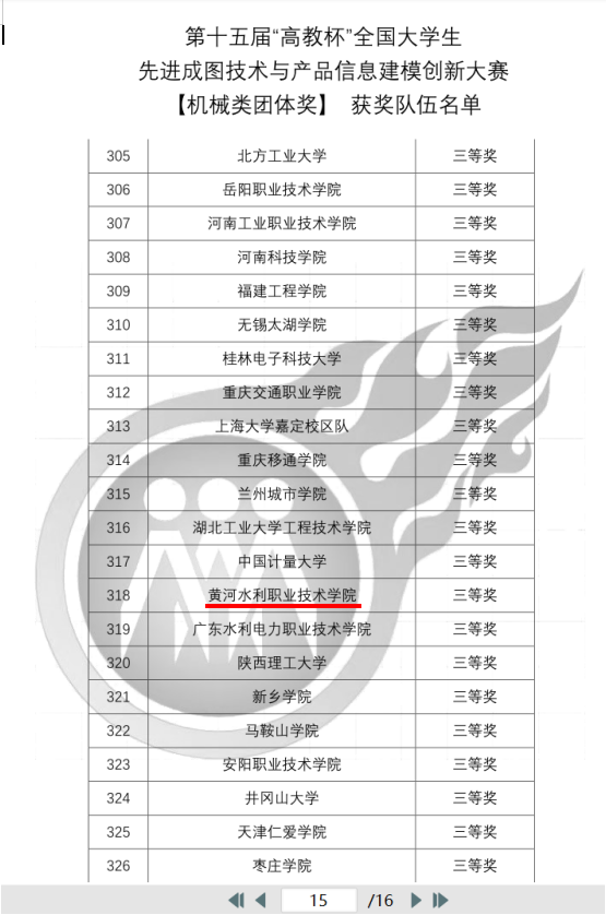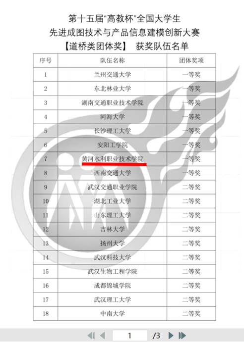 7月29日-8月2日,第十五届“高教杯”全国大学生先进成图技术与产品信息建模创新大赛在江苏大学成功举办。我校水利工程学院、土木与交通工程学院、机械工程学院共派出4支代表队参加了水利类、道桥类、建筑类、机械类四个类别的项目比赛。经过激烈角逐,我校学子荣获水利类团体一等奖、道桥类团体一等奖、建筑类团体一等奖、机械类团体三等奖。参赛选手共获得个人全能一等奖23项、二等奖22项、三等奖14项。我校第13次荣获水利类团体一等奖,也是唯一一所获此殊荣的高职院校。