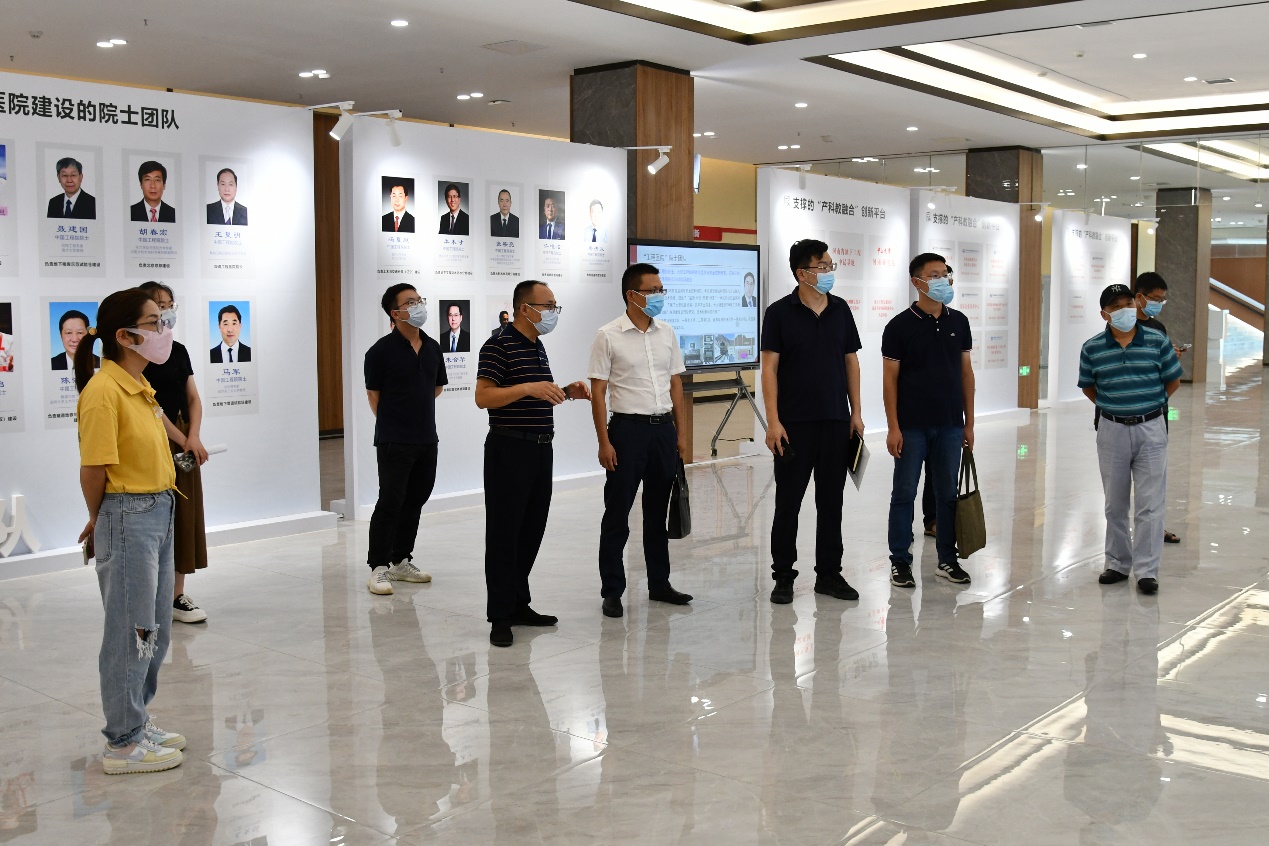 雷恒院长一行首先在综合办公楼参观坝道工程医院展厅和沙盘,听取坝道工程医院体系架构、功能定位和建设总体情况介绍,并观看《坝道工程医院——“产科教融合”创新平台》宣传片,深入了解坝道工程医院综合足尺试验基地最新建设进展,以及基地在推动科技创新、成果转化、人才培养、科学普及等方面的意义。