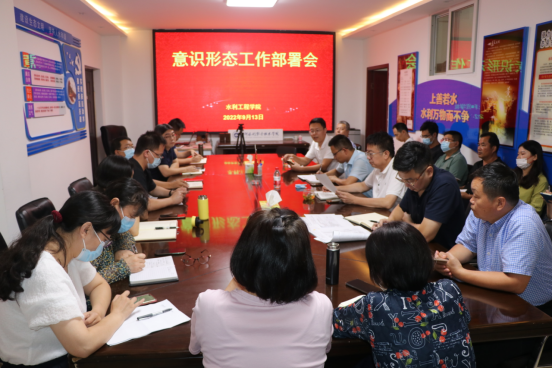 为进一步统一思想,凝聚共识,强化责任,9月13日水利工程学院召开了意识形态工作部署会,会议由党支部书记孙天星主持。